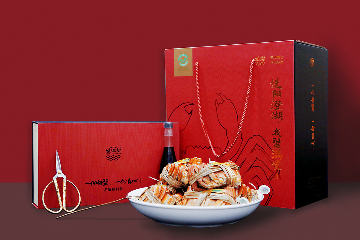蘇州市蟹滿堂蟹業有限公司于2005年開始養殖大閘蟹,2012年創立品牌,至今為止,擁有十多年的養殖經驗,有整套核心養殖技術和專業的養殖能手,有綠色、安全、原生態的養殖環境,還有大閘蟹產供銷資質多重權威認,在設計陽澄湖大閘蟹時,稀缺獨特,產品數量有限,消費者身份,人均價格較高,對應于高檔消費群體。展示大閘蟹文化的細節,讓顧客感受到吃螃蟹是一種吉祥的道德,是一種金秋季節的季節性食品,收獲快樂。因此,在設計風格上,要體現簡潔的氛圍、低調的奢華、強烈的品質感,運用陽澄湖元素和中國風元素,提升品牌包裝設計的高端定位。蘇州創意食品包裝設計,首選極地視覺。