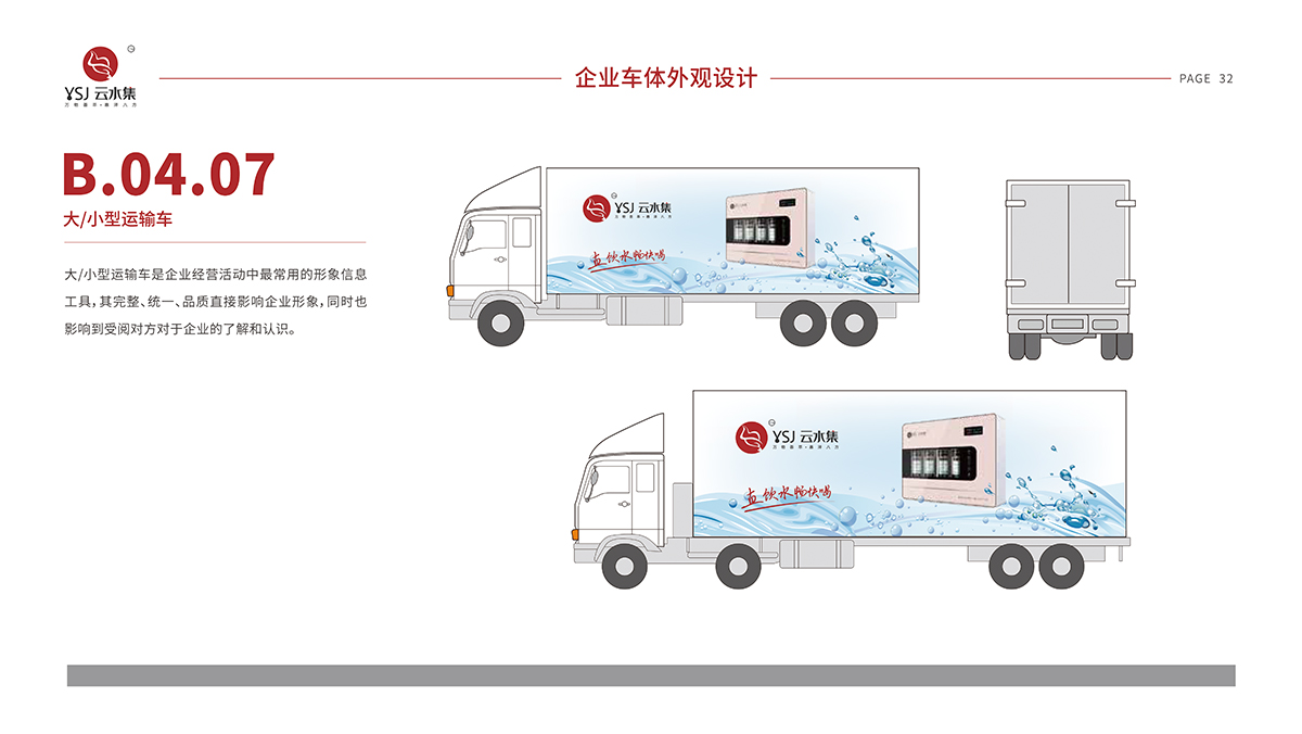 LOGO圖形創意中將“云水集”音節首字母“Y、S、J”構圖成鯤鵬圖案,其動作欲展翅飛天,寓意企業懷抱鯤鵬之志,平臺遠大,“萬物薈萃,惠澤八方”。字母“Y”與水滴相結合,代表企業初創凈水產品,在品牌LOGO中保留其造型是為了警示企業所有員工不忘初心!