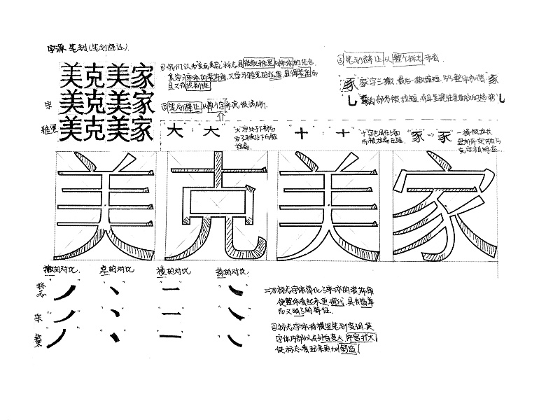 字型結構-美克美家標志是微軟雅黑與宋體的結合,既有等線體的現代、莊重感又有宋體的雅致、大氣。是一款難得的標準字體。宋體的裝飾角加上雅黑的弧度,顯得莊重而且又有很強的識別性。結合兩種字體的特點組合新的一款字體是一種常見而且實用的造字方法,例如,楷體與宋體的結合,字研所將會在以后進行分析……