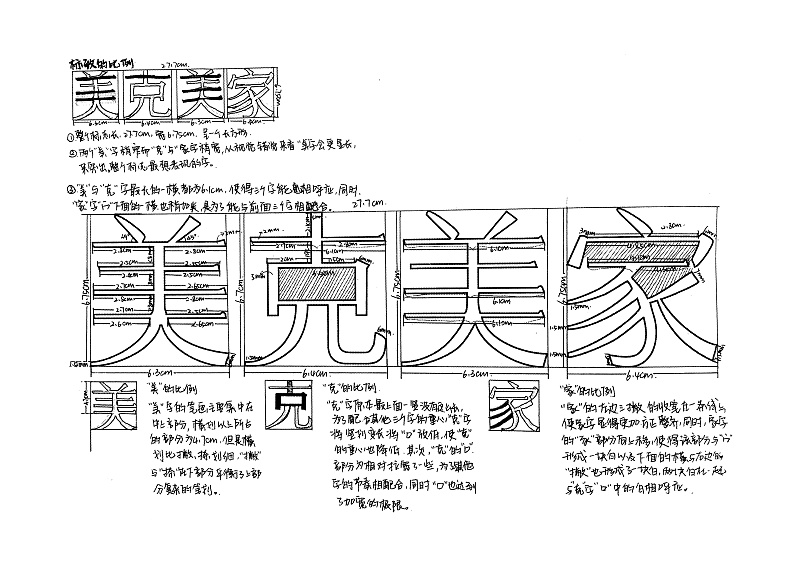 布白-布白均勻決定著一個字的品相和氣質,中國書法講究計白當黑。外白與內白在的大小影響著字與字之間的距離,克字外白最大,所以它與相鄰的美字之間的距離要小于美字與家字之間的距離。尤其在西文字體中,字母之間的距離不是均等的就是這個道理。