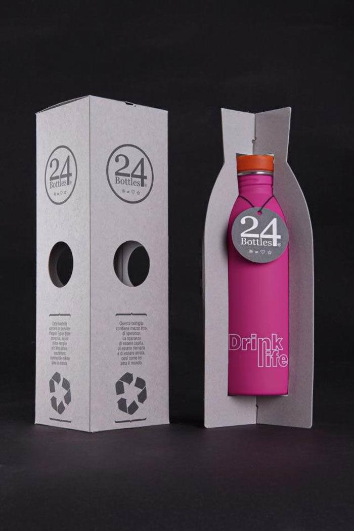 24bottles是一種通過打破征收塑料瓶回爐重造才能正式啟用飲料瓶的行業壁壘而創作的包裝形式,旨在利用全球網絡塑造一種可以用來代替任何品牌專用包裝使用器皿的設計形式。 24bottles的醒目起源于北歐國家的Anglo-Saxon地區,在那里每一個人都隨身攜帶一個塑料片用來解決生活或者工作中飲用水的灌裝攜帶問題,這些瓶子的制作材料集中在金屬瓶,硬塑料和玻璃,都是可以重復使用的環保材料。
