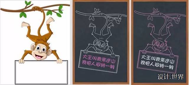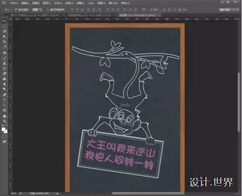8.然后使用移動工具把猴子拖到一個黑板背景上就ok啦!可以加上一些粉筆字(不會的小伙伴們可以在網(wǎng)上找下教程哦)