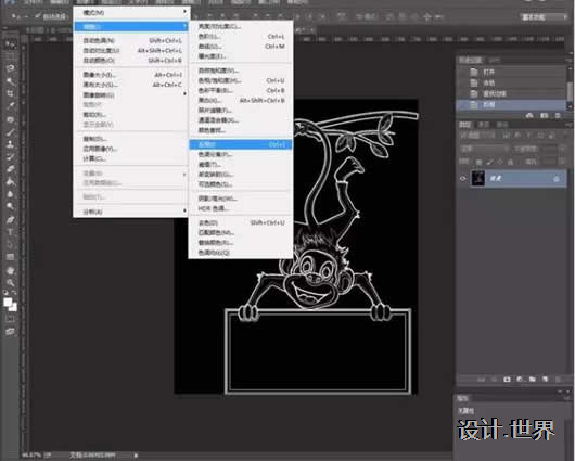 4.點擊:圖像—調整—反相,或者使用快捷鍵ctrl+l,這時候是不是有點點粉筆的感覺了呢,別著急,還有呢...